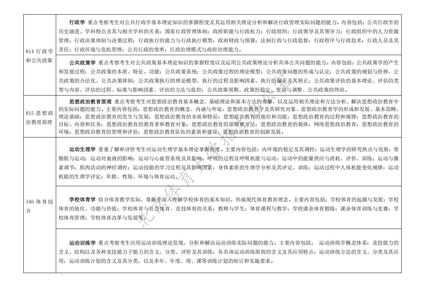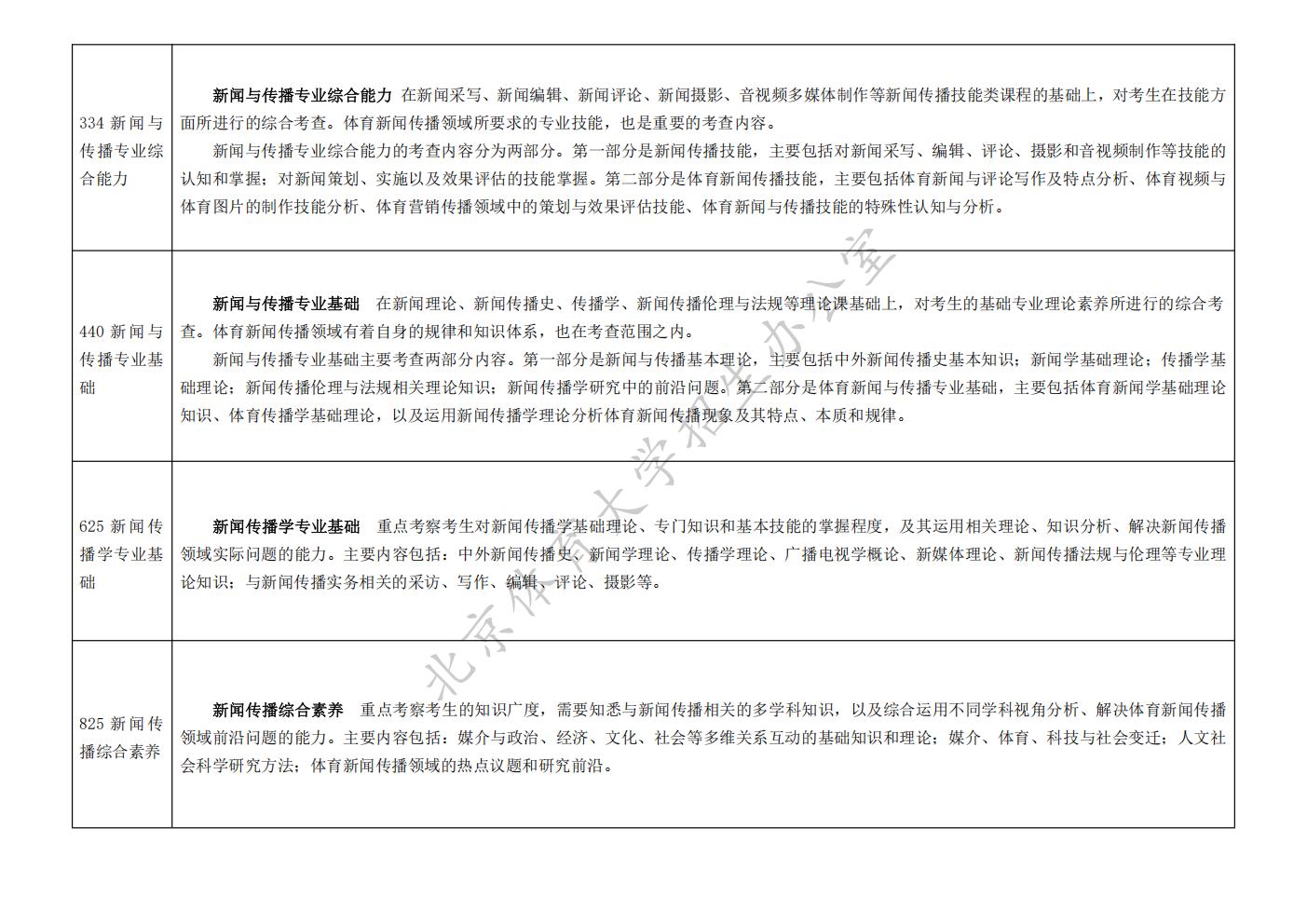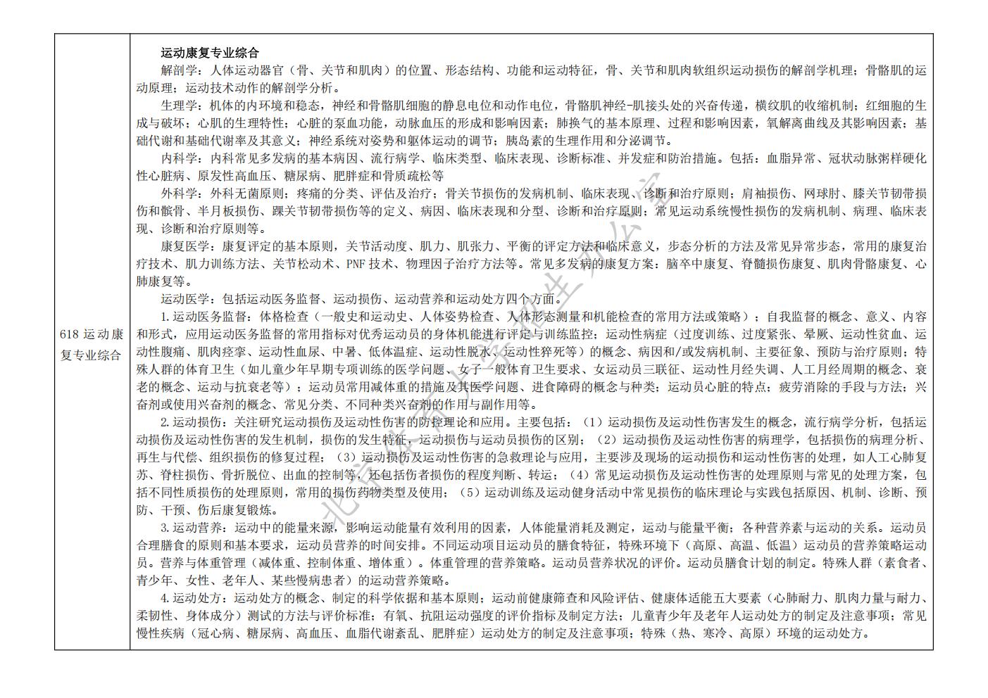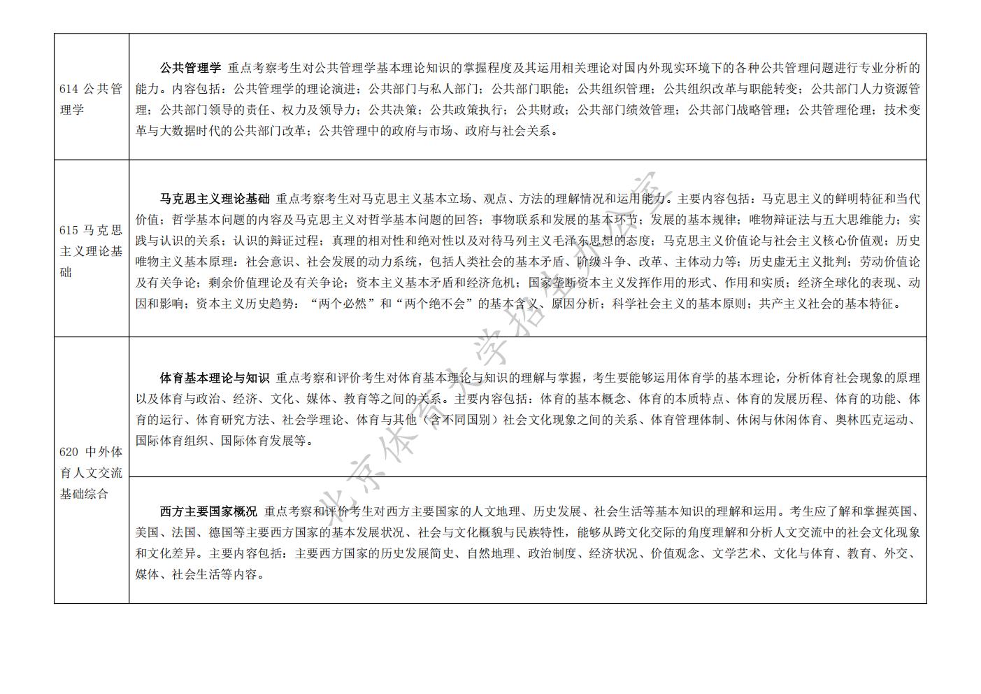 北京体育大学2026年硕士研究生自命题科目考试内容说明及题型设置